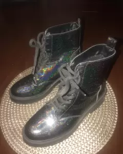 Bonitas botas estilo militar marca Frida ,son del número 5 ,se usaron solo 2 ocasiones son de charol y brillan son de color obscuro