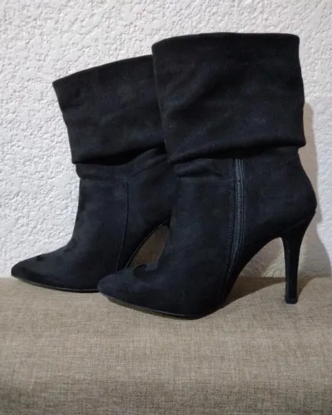 Botas de gamuza. Lindas botas de gamuza negras, corte textil, forro textil, suela sintética, tacon de 11cm, en perfecto estado.