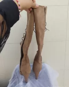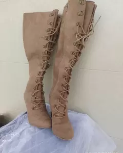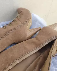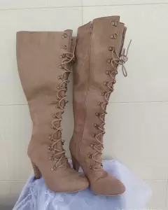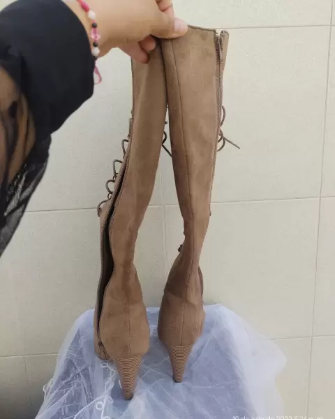 Botas de gamuza. Botas botas largas con cintillas color café en buen estado totalmente nuevas, tacón del 8 punto 24.