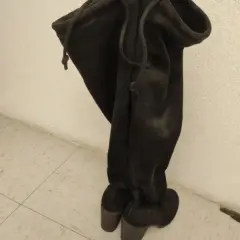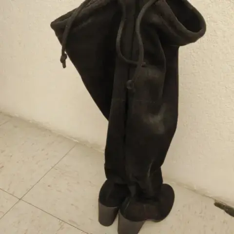 Botas altas de gamuza, talla #5 se usaron un par de veces, tacos de 7.5 cm largas arriba de la rodilla. Entrego con cubrepolvo