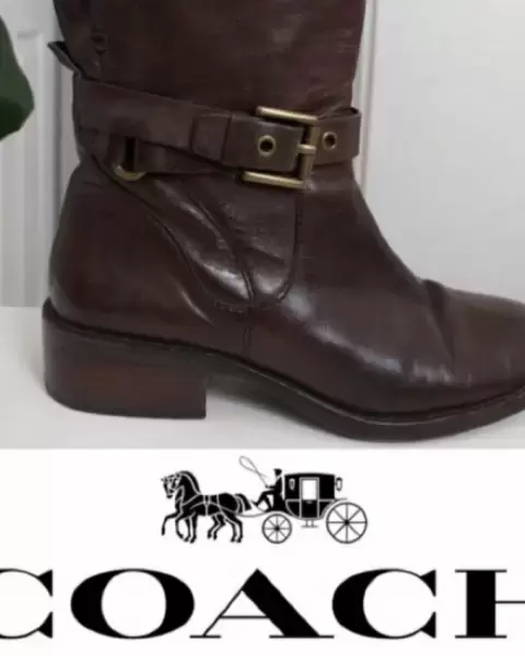Botas de piel ⚠️ COACH ⚠️3.5 En perfecto estado CoachBotas de piel coach se usaron muy pocas veces estan en muy buen estado la suela es de cuero. Talla Méx 3.5, considero también quedan bien a 4.