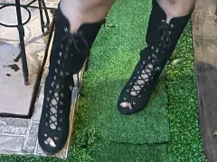 Botas de piel de gamuza. Botas altas de piel de gamuza negra con agujeta y cierre . Lucen espectaculares con leggings o vestidos Tacón 12 con plataforma 1cm número 23 mex