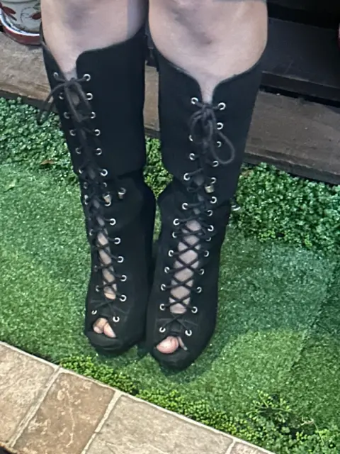 Botas altas de piel de gamuza negra con agujeta y cierre . Lucen espectaculares con leggings o vestidos Tacón 12 con plataforma 1cm número 23 mex