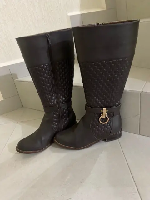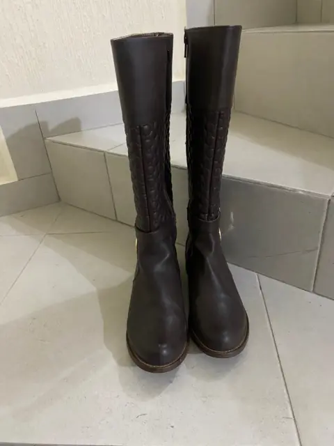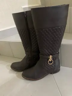 Botas de piso, con un detalle en dorado, color café, talla #4