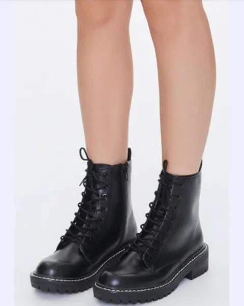 Botas de polipiel Forever 21. Botín de Polipiel al Tobillo con agujetasTall 26 MX 9 USColor café bronceNuevas con etiquetaEl color corresponde a la primera, segunda y tercera imagen, las otras son referencia al modelo del botín