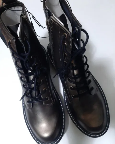 Botín de Polipiel al Tobillo con agujetasTall 26 MX 9 USColor café bronceNuevas con etiquetaEl color corresponde a la primera, segunda y tercera imagen, las otras son referencia al modelo del botín