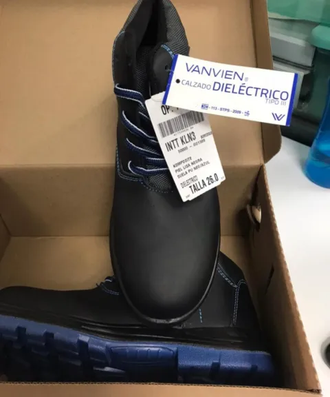 Botas de seguridad Vanvien. Calzado negro de seguridad; hecho con cuero de ganado vacuno liso, son talla 26, en buen estado, entrego en su caja.