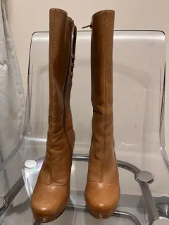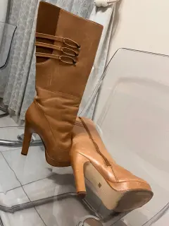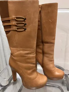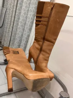 Botas color Café de talla 3 alto de tacón 10cm Ha sido usado ligeramente y se conserva muy bien.