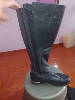 Botas de tubo largas. Botas de tubo largas con cierre aun costado y tienen un poco de licra para que se ajusten,en la parte de la suela tiene una pequeña cadena en dorado