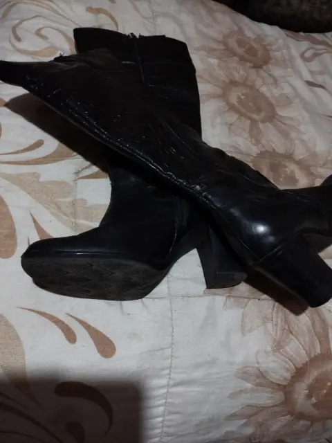 Botas Flexi, corte piel, forro y suela sintético, tacones 6cm , largo a la rodilla, con desprendimiento ligero del recubrimiento sobre el cierre lateral.