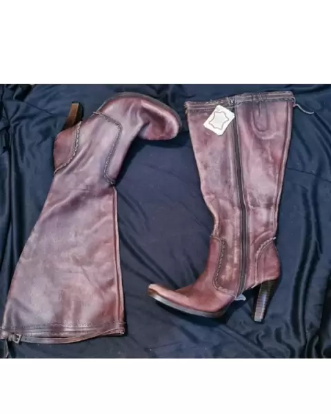 BOTAS LARGAS DE PIEL,37 CM DE LARGO, COLOR CAFE, PARA UNA PANTORILLA NO TAN AMPLIA, # 7 AMERICANO #24 MEXICANO,TACON 8 CM