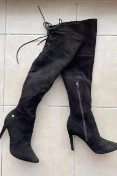 Botas largas, tacón de aguja de 10 cm, sólo se usaron una vez para unas fotografías de mi trabajo.Buscamos nueva dueña para darles una segunda oportunidad, talla 5!