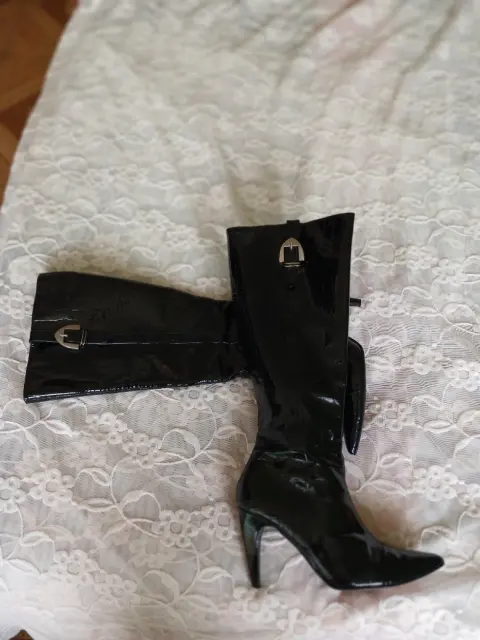 Hermosas, botas negras charol, piel vacuno, tacon altura 8, solo se usaron para un evento número marca Andrea. Número 5.5