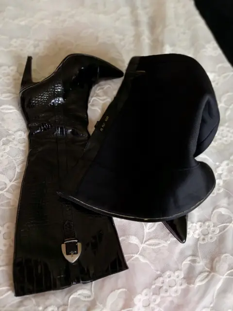 Botas largas charol tipo cocodrilo. Piel vacuno!. Hermosas, botas negras charol, piel vacuno, tacon altura 8, solo se usaron para un evento número marca Andrea. Número 5.5