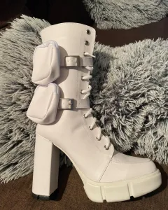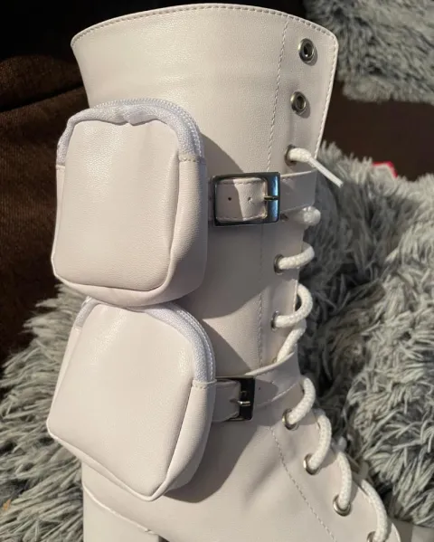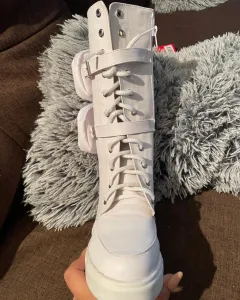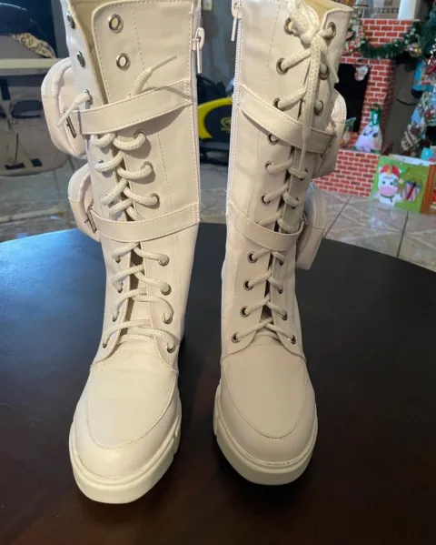 Botas largas estilo militar color blanco en número 3 mx tacon 12 cm aprox. (Disponibles del 23 al 26 pregunta por tu número)