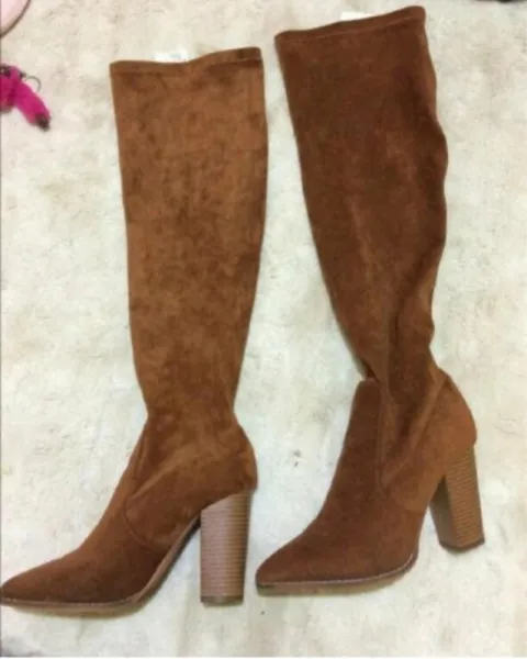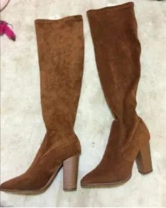 Botas extra largas material tipo ante strech tacon de 9cm puesta una sola vez #5 mexicano sin ningun detalle