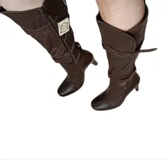 BOTAS LARGAS DE PIEL #25. BOTAS LARGAS DE PIEL, NUEVAS CON ETIQUETA, TRAEN ALGUNOS RAYONES QUE SE PUEDEN QUITAR BOLEANDOLAS,38 CM DE LARGO, COLOR CAFE, PARA UNA PANTORILLA NO TAN AMPLIA (NO ME CERRARON,MIDE 40 CM) # 8 AMERICANO #25 MEXICANO, TACON 9.5 CM