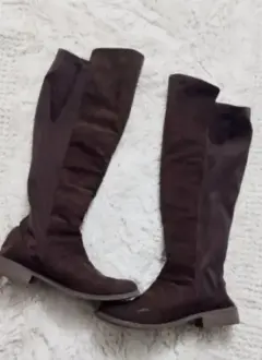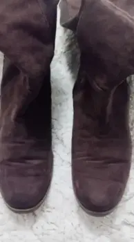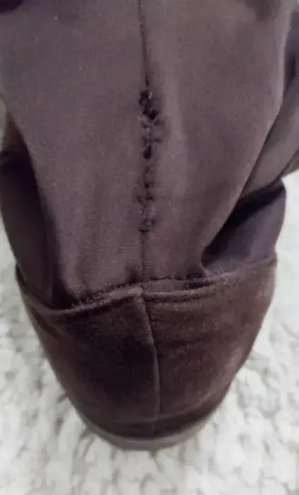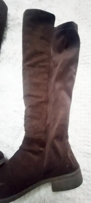 Botas largas super cómodas. Tela tipo gamuza en la parte delantera y licra en la parte trasera, lo que hace que se amolde perfecto a cualquier tamaño de pantorrila😉Están en muy buen estado, tienen poco uso, pero han estado guardadas mucho tiempo,muy cómodas , solo tiene un cachito surcido y medio descocido en la parte trasera a la altura del tobillo (última foto)