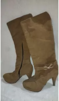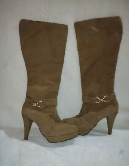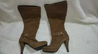 Botas largas para mujer👢Tacón bajo.❤️Tipo gamuza 💕Super Cómodas.🥴Son semi nuevas, están en muy buen estado .👌Talla 25 1/2 🌸