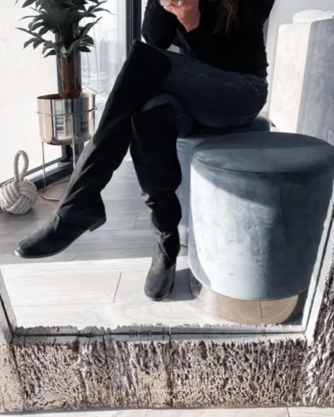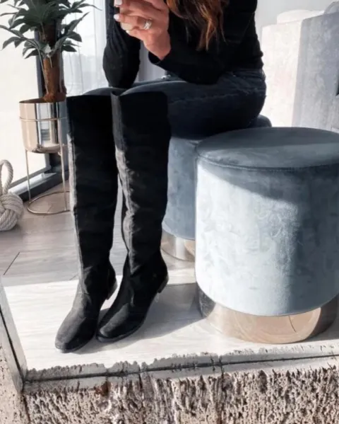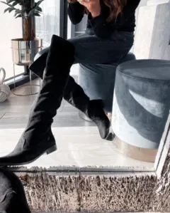 Hermosas botas altas de gamuza, totalmente nuevas, tacón 3cm, cierre a lado, negras, 24, pero le queda perfecto a alguien 24 1/2. Aprovecha la oferta única!!