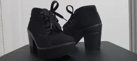 Botas negras tipo lona, cómodas, tacón ancho para mayor seguridad, muy resistentes