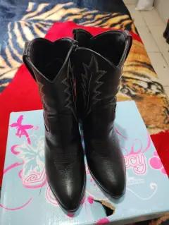 Botas para dama negras del número 3 con tacón no muy alto mediano de la marca Mary Cecy vaqueras