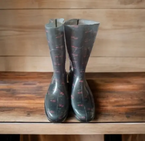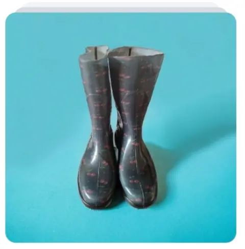 Botas para la ⛈️😶🌫️💦🌧️☔. Botas de 18forever, color gris fuerte con cerezas. Una sola postura, son número 4 pero vienen reducidas, serían para alguien del número 3. Están nuevas