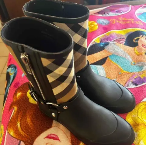 Botas para lluvia. Hermosas botas para lluvia, en excelente estado, de poco uso,aún tienen las etiquetas en la suela, tienen un raponsito anexo foto, el modelo no es muy común del cinturón en el tobillo
