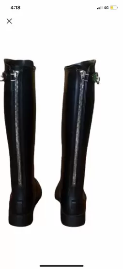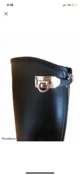 Botas para lluvia Ferragamo. Botas para lluvia con cierre atrás y también de lado traen un broche para cerrarlas, son de plástico para lluvia y tienen unos rayones a los lados de la parte del talón que se le hicieron por el roce de los pies, están en la última foto, por esos rayones al precio final se decintarán 800 pesos.
