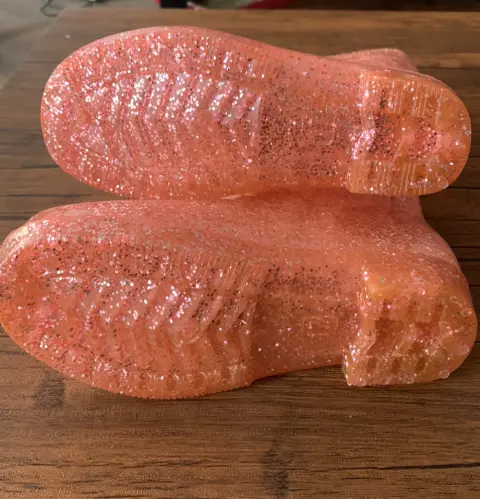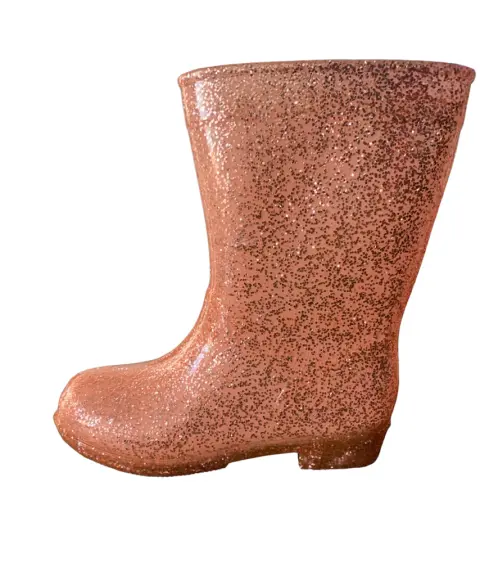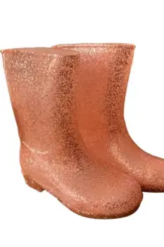 Botas para lluvia infantilTalla 17.Modelo Rosa con brillantina.La apertura de la bota mide aproximadamente 28 centímetros de circunferencia.Las suelas hechas con ranuras profundas que pueden proporcionar una buena tracción en superficies resbaladizas, manteniendo la seguridad de los niños sin resbalones.Corte: 100% PVCForro: 100% AlgodónSuela: 100% policloruro de vinilo.