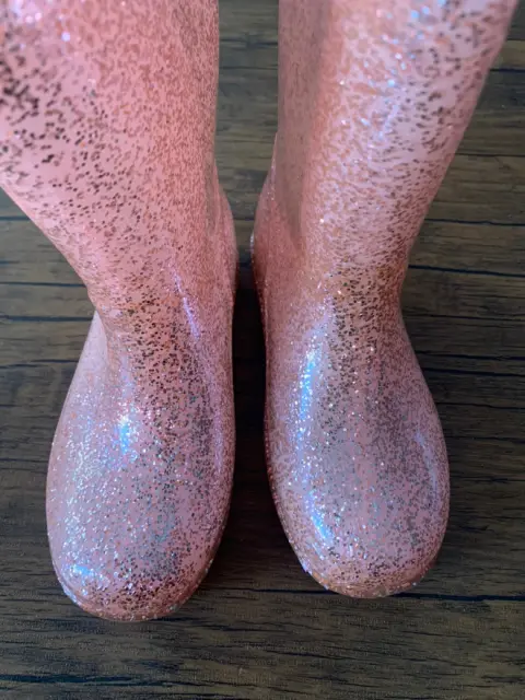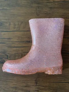 Botas Para Niña . Talla 17.. Botas para lluvia infantilTalla 17.Modelo Rosa con brillantina.La apertura de la bota mide aproximadamente 28 centímetros de circunferencia.Las suelas hechas con ranuras profundas que pueden proporcionar una buena tracción en superficies resbaladizas, manteniendo la seguridad de los niños sin resbalones.Corte: 100% PVCForro: 100% AlgodónSuela: 100% policloruro de vinilo.