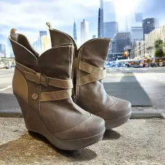 Botas plataforma # 25. 👢 preciosas botas de León Guanajuato Color camel con cinturón adornoCon plataforma 10 cm alto de los cuales 2 cm de plataforma Son muy cómodas Número 25Corte sintético Hecho en México Marca calza2 con clase Luce genial con jeans o vestido muy a la moda