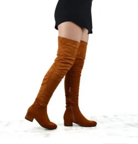 Botas por encima de la rodilla. Botas altas por encima de la rodilla para mujer ,largas con cremallera ,material suave de tacón bajo ,plantilla acilchada ,gamuza vegana