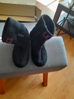 Botas tejidas con gamuza enfrente negras con rosa marca ugg en buenas condiciones