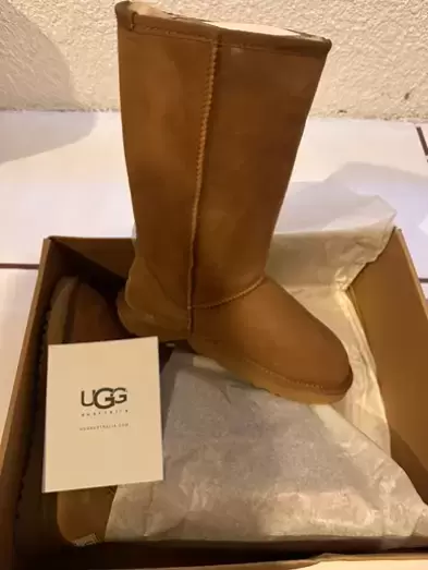 Botas UGG. Bota Ugg elaborada en piel con acabado gamuza, punta redonda, interior afelpado, logotipo de la marca a tono y suela antiderrapante.En su caja originalTalla 8 americano, talla 25!