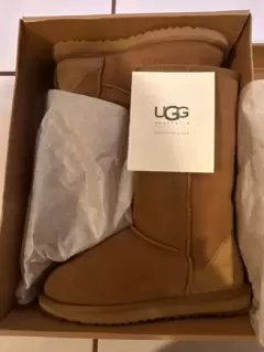 Bota Ugg elaborada en piel con acabado gamuza, punta redonda, interior afelpado, logotipo de la marca a tono y suela antiderrapante.En su caja originalTalla 8 americano, talla 25!