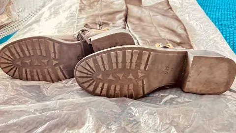botas de Zara en piel con hebillas doradas, cómodas, especialmente para estos días de lluvia