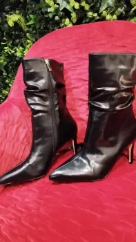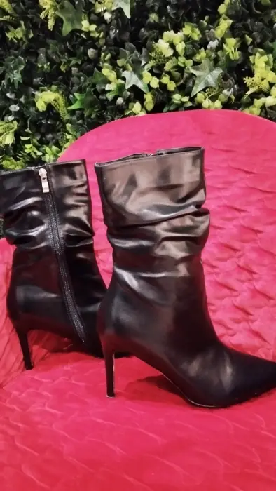 Son elegantes, media caña y en buen estado. Están tal cual en las fotos, sin ningún filtro. Solo el botín derecho, tiene una pequeña peladura en la punta fácil de arreglar. De resto, están perfectos, con tacón en excelente estado de 6.5 cm. de alto.PD: Realizo los envíos super rápido. 🌱🍁BT:5.5