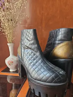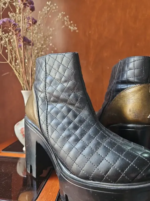 Botas negras, plataforma ancha y cómoda. Combinación con dorado.Boche ajustable, súper cómodas.