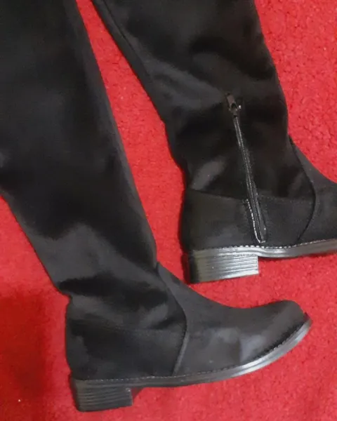 Maxibota #5.5. Bota alta de piso, llega arriba de la rodilla es color negro y trae agujetas para ajustarse, el material es de gamuza