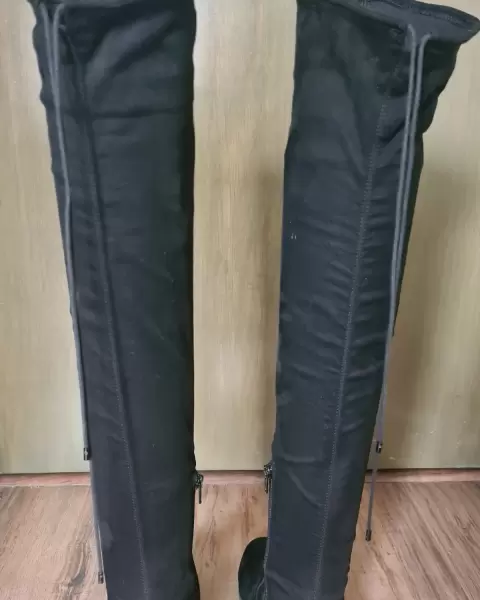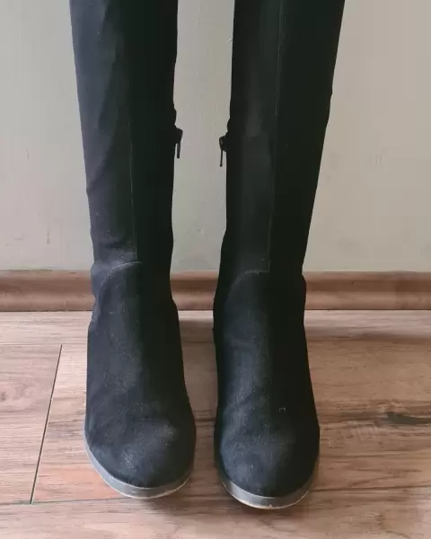 Maxibotas de gamuza negras. Botas de caña alta lllegan por encima de la rodilla muy poco uso las cuido muchísimo Por $100 más te las mando con hormas de parte inferior
