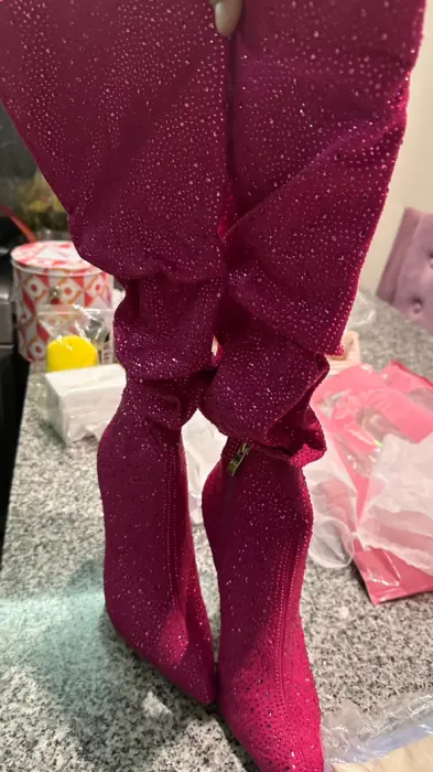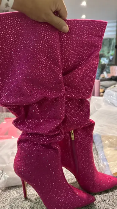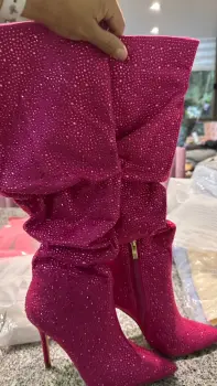 Preciosas botas pink. Botas con tacón elegante talla 25 Mx con brillos super tapa antes de rodilla