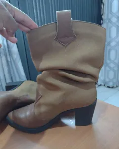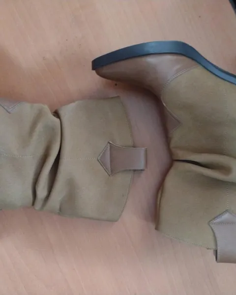 Hermosas botas cortas vaqueras de gamuza en color café con un detalle en color café más subido que las asé ver super padres tienen tacón de 4 CM muy cómodo tienen forro por dentro están listas para usarse en cualquier momento.