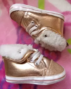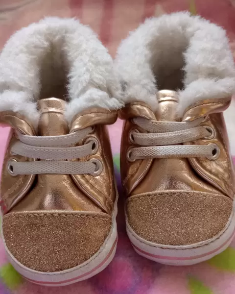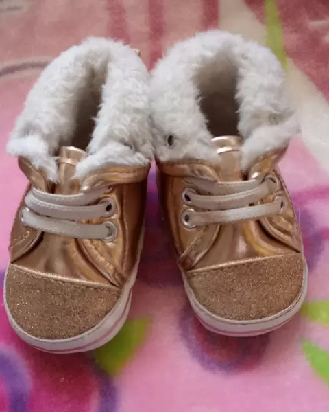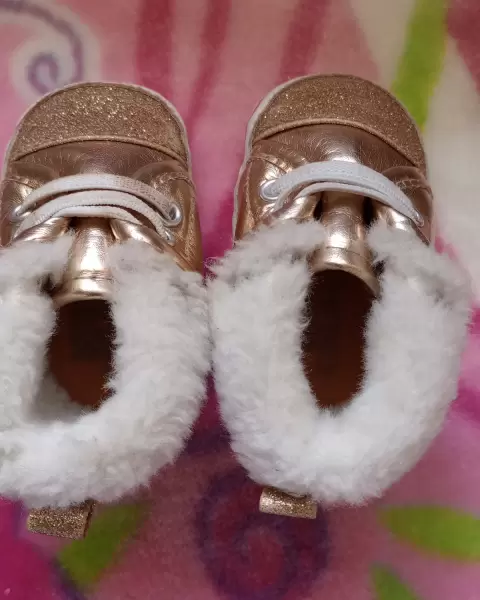 Zapatitos #10 - kids. Lomdos zapatitos de bebé, Dorados con brillotos en la larte de enfrente.Son aborregaditos por dentro 😍Talla #10 (3 meses)