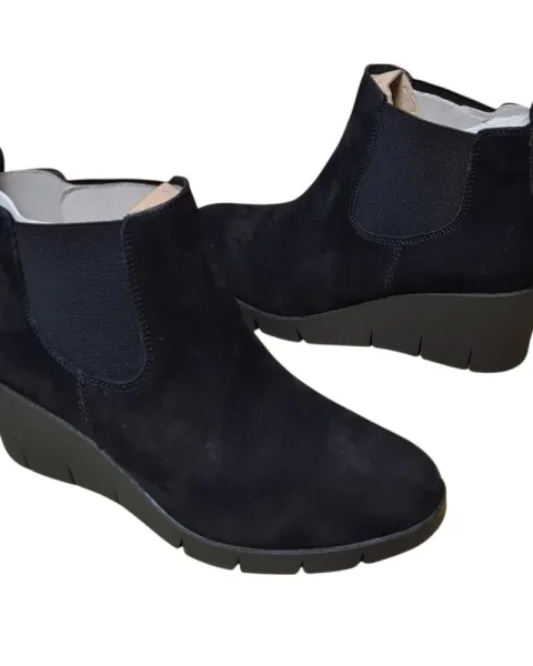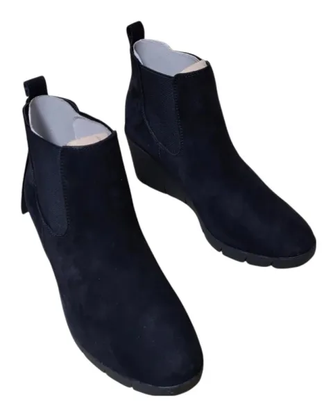 Elegantes y cómodas Botas de cuña 2" Cuero genuino parte interior textil Zapato Importado, Suela de Sintético, El eje mide aprox 4" desde el arcoBotines Chelsea con parte superior de cueroParte inferior de gomaflexible acanaladaTira en la parte trasera del talónNuevas y Originales