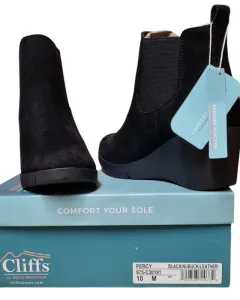 Bota Cliffs by White Mountain PERCY T-27. Elegantes y cómodas Botas de cuña 2" Cuero genuino parte interior textil Zapato Importado, Suela de Sintético, El eje mide aprox 4" desde el arcoBotines Chelsea con parte superior de cueroParte inferior de gomaflexible acanaladaTira en la parte trasera del talónNuevas y Originales