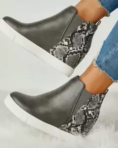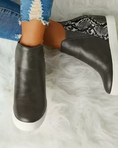 Bota cuña. Hermoso botín con cuña oculta, detalle de piel de víbora en la parte trasera del calzado, cómodos y modernos.. Nuevos con su caja