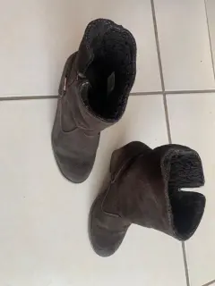 Botas cafés marca Levi’s, sin detalle y acolchonadas por dentro T. 24
