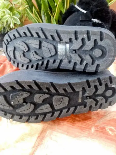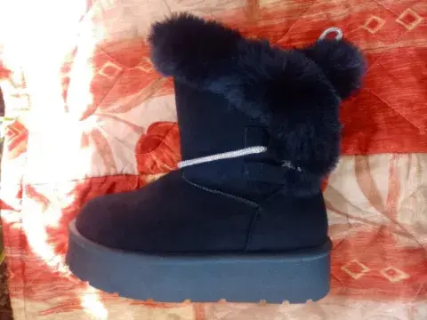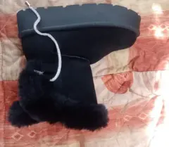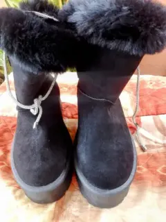 Hermosas botas negras de peluche por dentro, el material por fuera de gamuza, cuenta con listones que son de metal para ajustar.