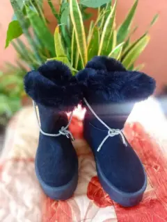 Botas color negro. Hermosas botas negras de peluche por dentro, el material por fuera de gamuza, cuenta con listones que son de metal para ajustar.